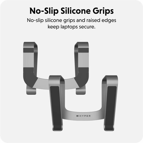 Support pour ordinateur portable HyperSpace HS1110GYGL - Compatible avec les écrans jusqu'à 40,64 cm (16 pouces) - Hauteur : 14,99 cm (5,9 pouces) x Largeur : 27,43 cm (10,8 pouces) x Profondeur : 20,57 cm (8,1 pouces) - Bureau - Aluminium - Gris sidéral - Pour ordinateurs portables et MacBook - Ergonomique, antidérapant, protection contre la surchauffe