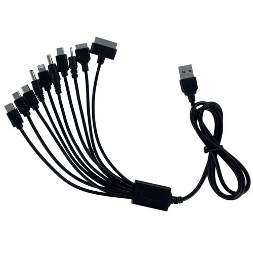 Câble de charge multi-connecteurs pour téléphones GSM et smartphones - Longueur 1m - 10 connecteurs compatibles Apple, Nokia, Samsung, USB-C, Micro USB, Mini USB