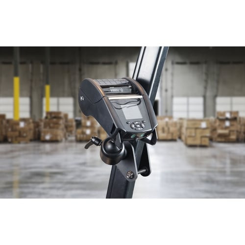 Support sécurisé pour imprimante mobile Zebra ZQ620, adaptable à tout support grâce au modèle de montage universel AMPs.