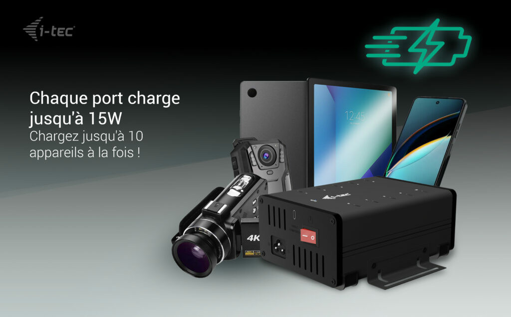 Ce HUB moderne offre 10 ports USB-C avec la fonctionnalité Plug & Play et jusqu’à 15 W de charge par port. Avec 10 ports USB, le HUB peut charger jusqu’à 10 appareils à la fois.
