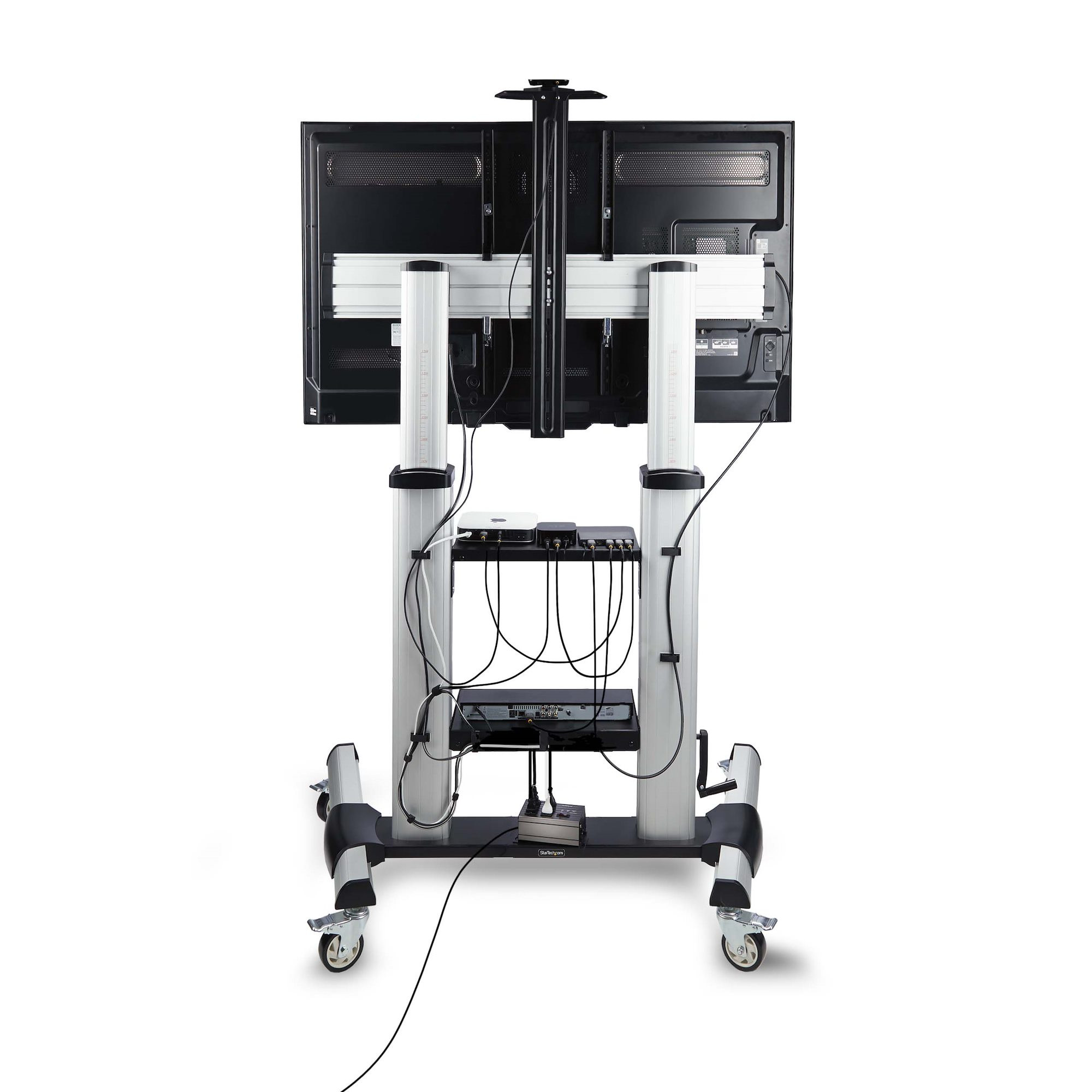StarTech.com Support TV à Roulettes pour Écrans Plats de 60 à 100 pouces jusqu'à 100 kg, Réglage en Hauteur par Manivelle, Support/Chariot Télé Mobile, 152,4 cm (60"), 2,54 m (100"), 200 x 200 mm, 1000 x 600 mm, Aluminium, Plastique, Acier, Noir, Argent