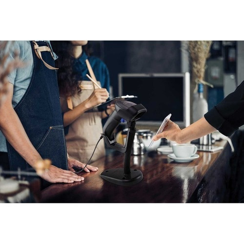 Datalogic QuickScan QW2520 Retail, Commercial Service, Hospitality, Government Handheld Barcode Scanner Kit - Cable Connectivity - Black - USB Cable Included - 510.54 mm Scan Distance - 1D, 2D - Imager - Omni-directional - USB, Serial, Keyboard Wedge - Stand Included - IP52