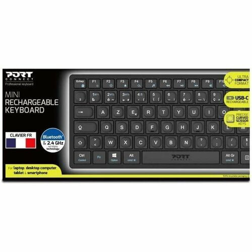 Port Connect Keyboard - Wireless Connectivity - USB Type C Interface - French - AZERTY Layout - Black - Scissors Numeric Keypad - Bluetooth/RF - 5 - 10 m - 2.40 GHz - Windows, macOS, iOS, Android - Mobile Phone Accessory, Universal - PC, Mac