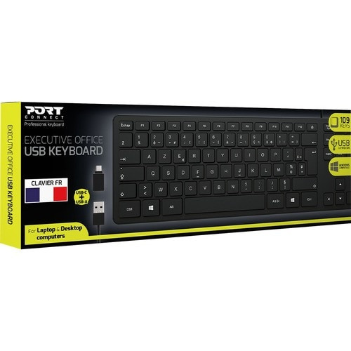 This product is a professional, wired, desktop keyboard with dual USB-A & USB-C connectivity. The keyboard has 109 keys.