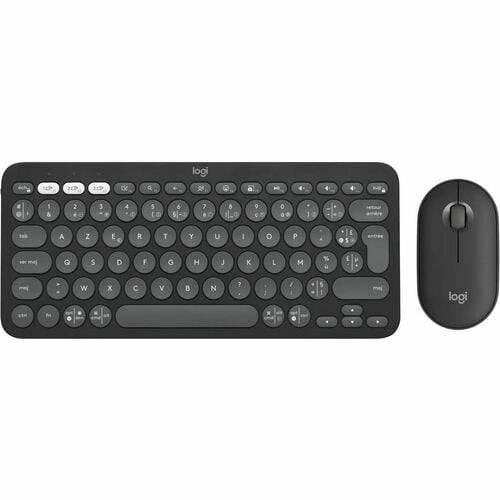 Logitech Pebble 2 Combo Keyboard and Mouse - AZERTY - French - USB Type-A Wireless Bluetooth 2.40 GHz Keyboard - USB Type-A Wireless Bluetooth Mouse - Optical - 4000 dpi - Scroll Wheels with Brake - Desktop View, Search, Back, Emoji, Screenshot Keyboard Shortcuts - AA, AAA - Compatible with Chromebook for PC, Mac