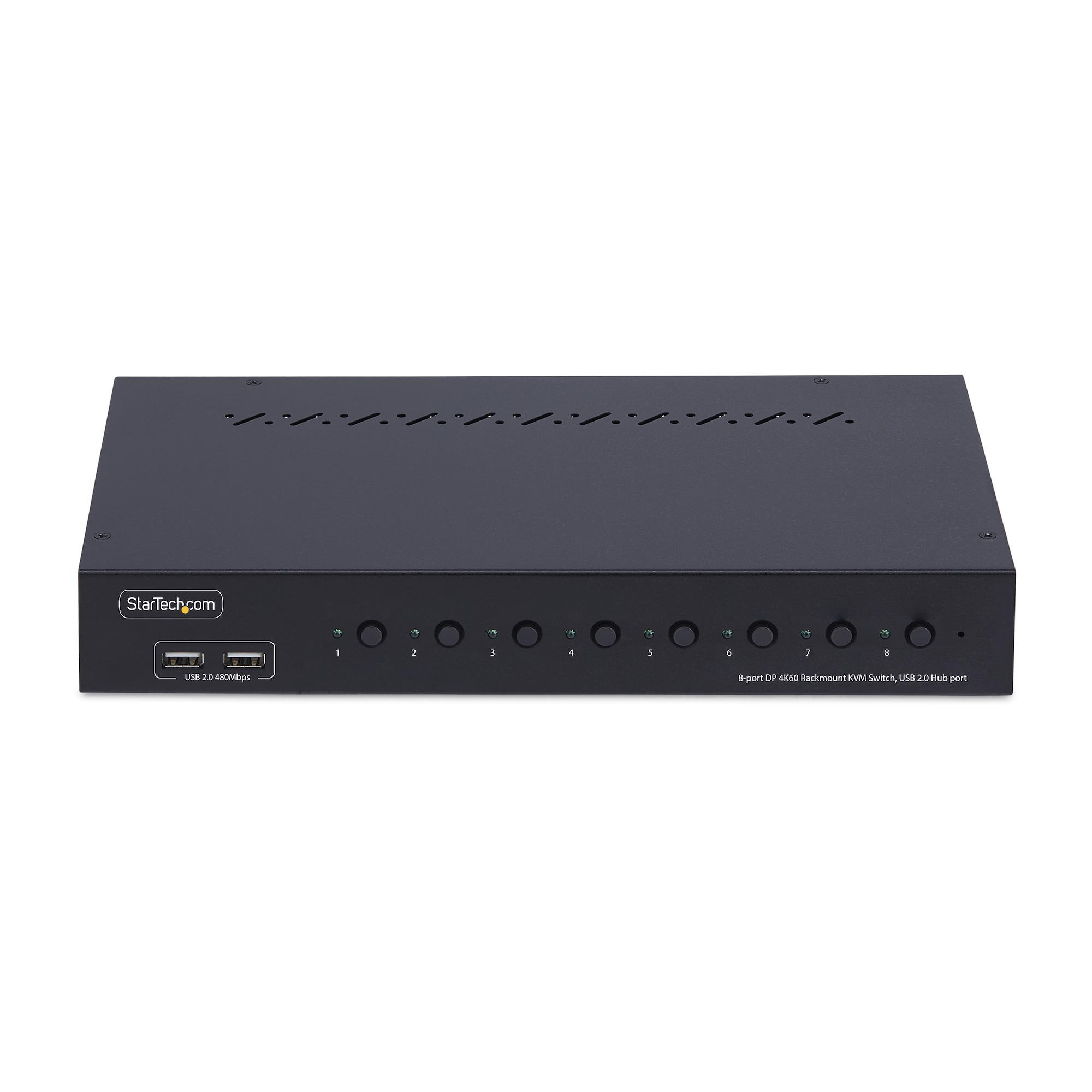 StarTech.com R8AD122-KVM-SWITCH. Keyboard port type: USB, Mouse port type: USB, Video port type: DisplayPort. HD type: 4K Ultra HD, Maximum resolution: 3840 x 2160 pixels, Data transfer rate (max): 0.48 Gbit/s. Product color: Black, Rack capacity: 1U, Housing material: Zinc. Power source: DC, Input voltage: 100 - 240 V, Input current: 1 A. Compliance certificates: Federal Communications Commission (FCC), Trade Agreements Act (TAA)