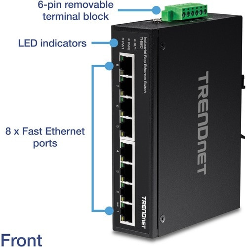 TRENDnet TI-E80 8-Port Ethernet Switch - Fast Ethernet - 100Base-X - New - TAA Compliant - Layer 2 Supported - Twisted Pair - DIN Rail Mounting