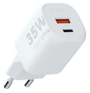 With its compact design and dual port functionality, our 35W GaN² Ultra wall charger is perfect for your travels, office, or home. The inclusion of USB-C and USB-A ports ensures compatibility with a wide range of devices. The USB-C port provides high-speed charging for the latest smartphones, tablets, and even Ultrabooks or other smaller USB-C PD Laptops. You won't need any additional adapters; simply plug in and power up. When powering multiple devices simultaneously, the maximum output of 35W is distributed across the ports.
