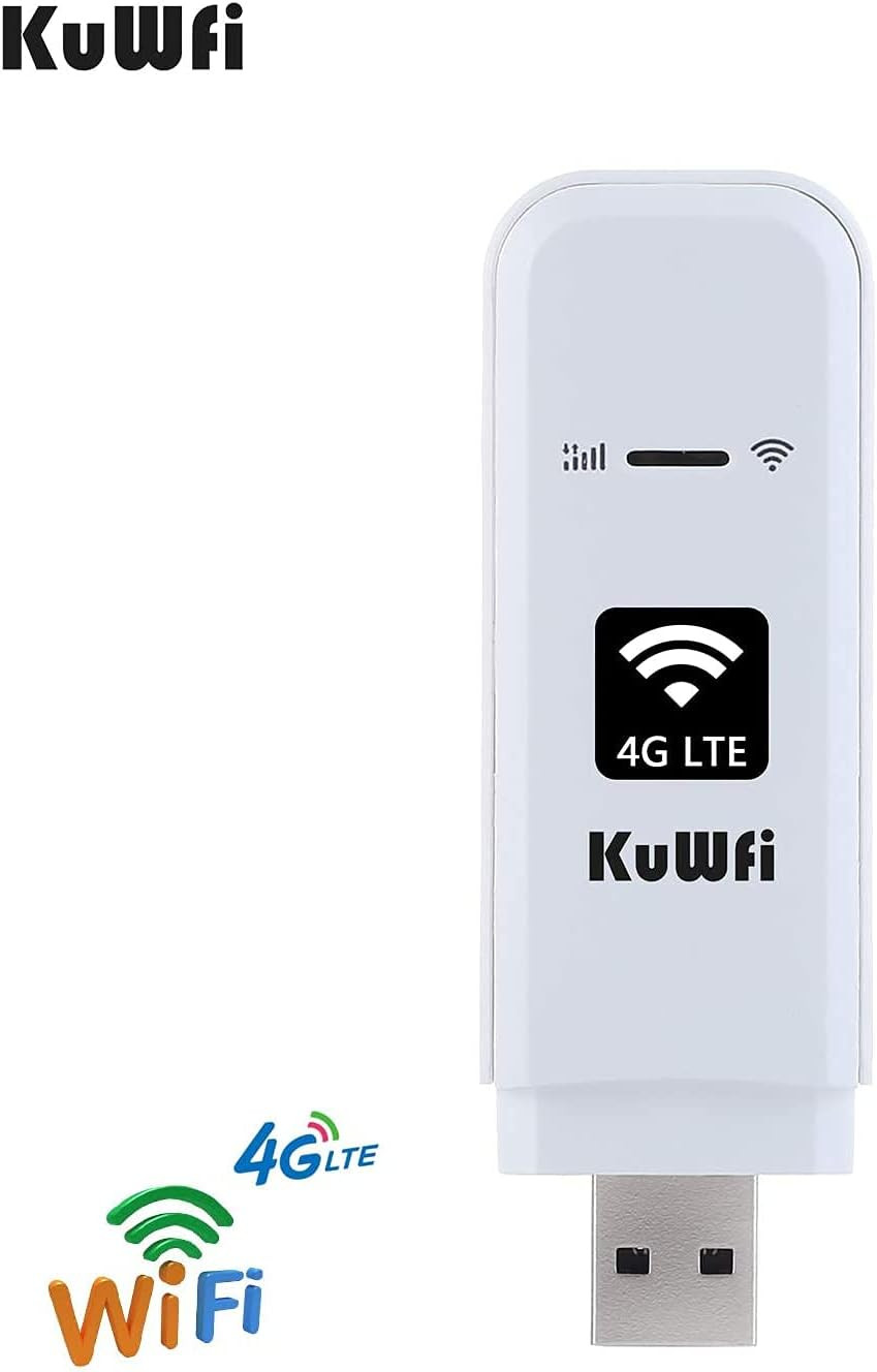 KuWFi Mobile Wi-FI Dongle, 4G LTE USB WiFi Modem Mobile Internet Devices Unlocked LTE Modem with SIM Card Slot Support B1/B3/B7/B8/B20 LDW931