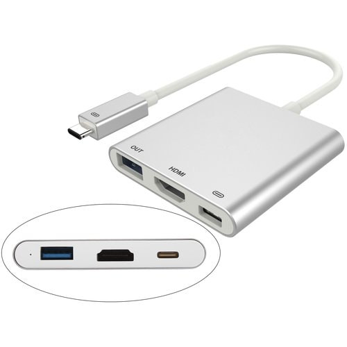 USB-C 3.2 GEN 1 HUB (5 GBIT/S) 3 PORTS: USB-A, HDMI, USB-C (CHARGE PD 60W max) - 10cm cable - Adapter compatible with any USB Type-C device (laptops, tablets and smartphones)